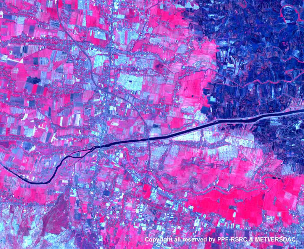 Gambar di bawah ini menunjukkan citra ASTER bencana kawasan lumpur panas di wilayah Sidoarjo, Jawa Timur.