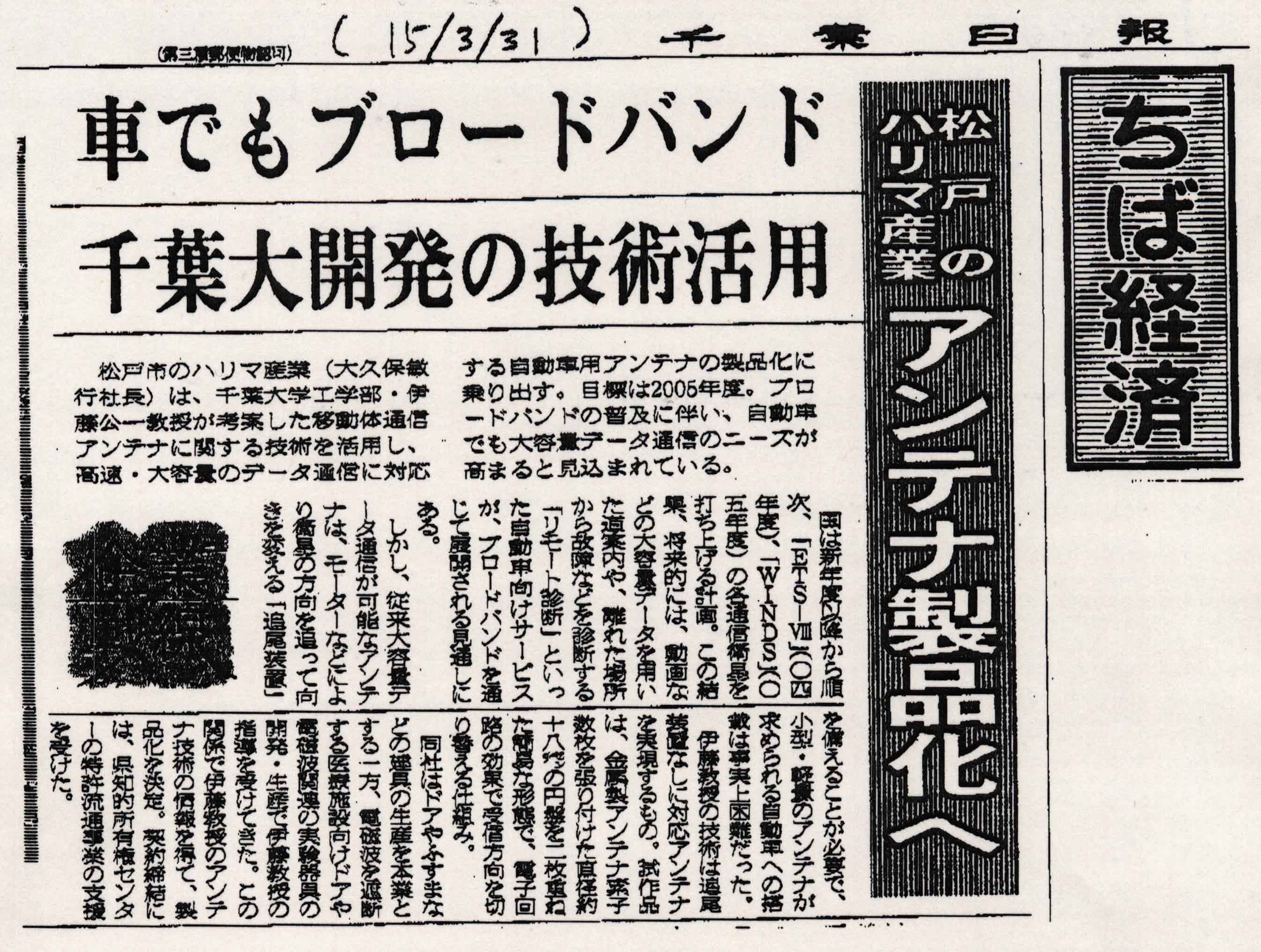 Chiba Nippou Newspaper, 31 March 2003 (download) |